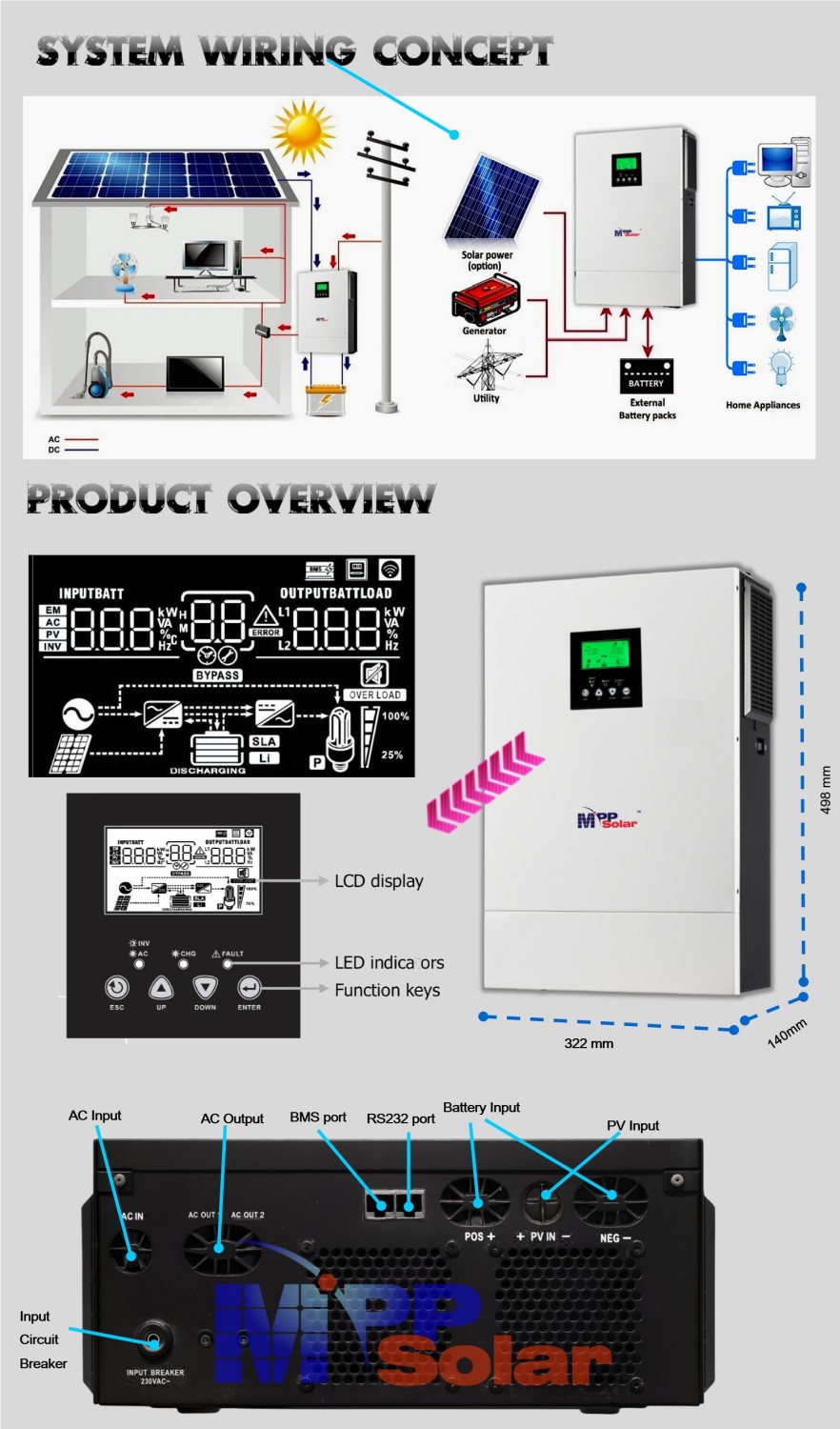 220/230/240VAC 12KW 48VDC grid optional / off-grid solar inverter + mppt solar charger 200A, (PV input 500Vdc) + battery charger 180A