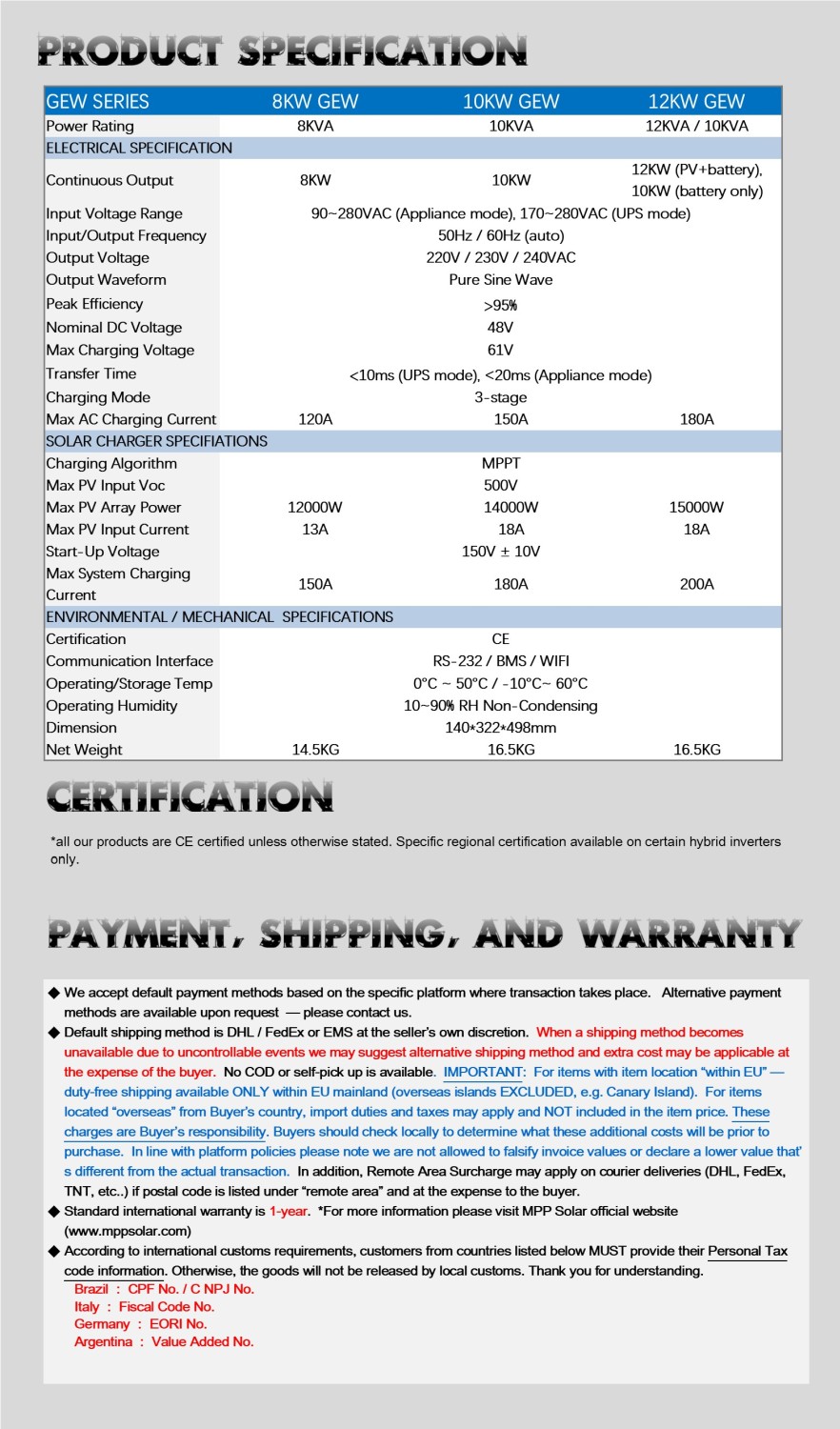 12KW GEW (12KW 48V) AU12KW GEW (12KW 48V) AU