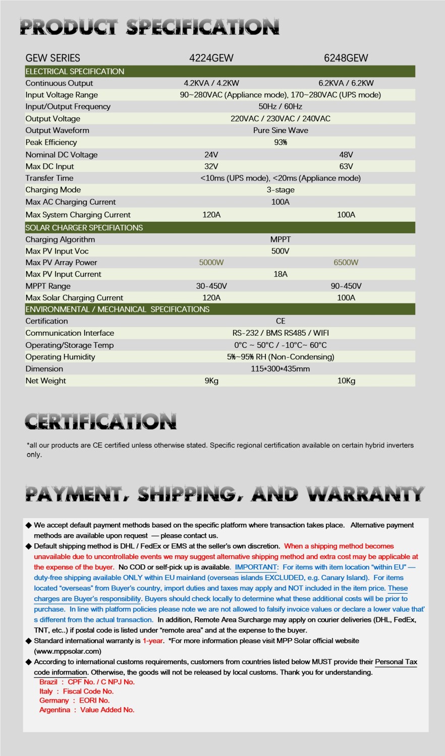 SKU: PIP 4224GEW-1 Category: EU Warehouse Tags: 1-4KW, 230vac, 24VDC, Mppt Solar Inverter, Off-grid, wifi